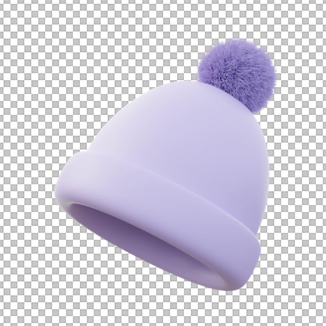 Purple Pompom Beanie 3D PNG